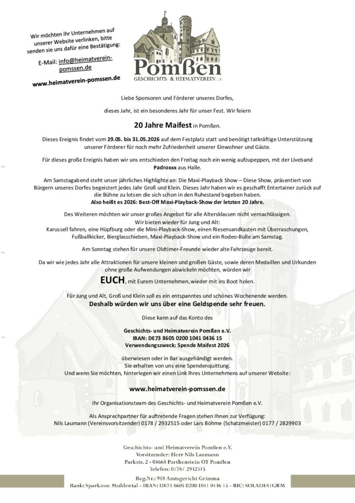 Sponsoren gesucht für 20 Jahre Maifest