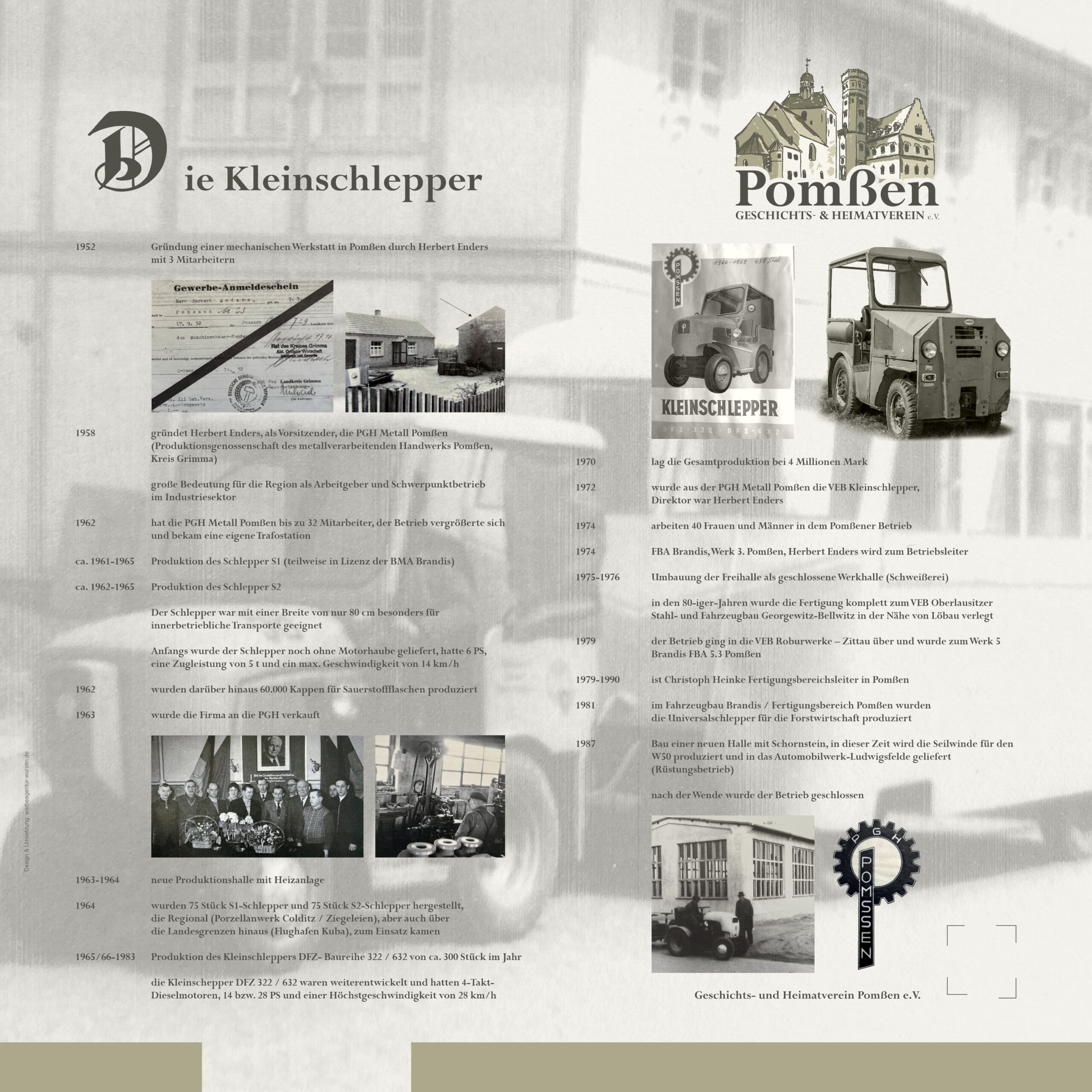 Am 13.03.2026 haben wir in Pomßen unsere Infotafeln erweitert. In der Großsteinberger Straße, alte Produktionsstätte, hängt jetzt das Schild über den historischen Hintergrund der Kleinschlepper und Ihrer Entstehung.